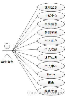通过2.3功能的分析,得出了本高校学生选课系统的用例图:
