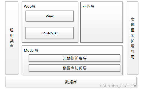 本酒店客房管理系统的架构设计主要分为可以3层,主要有Web层,业务层,Model层。其中web层还包括View层和Controller层,Model层包括元数据扩展层和数据访问层。