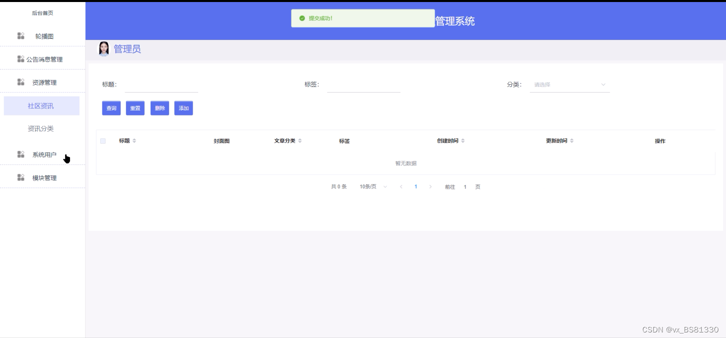 社区资讯信息管理:发布、删除相关的社区资讯信息。