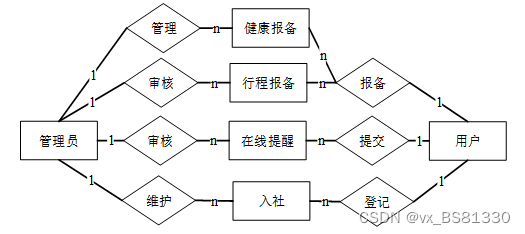 (3)确定好系统使用的技术,进行在线确认系统所划分的用户角色,并且根据用户角色划分确定所要设计的功能模块,对社区疫情防控管理系统的设计主要划分别为管理员和用户角色,并所使用的功能模块也相应不同,但是系统的数据库实现的内容是交互的,用户可以随时根据自己的需求进行信息查询,对于系统工作人员可以根据自己的分管内容进行在线信息的处理及操作,管理员获取到所有用户的详细数据信息,并根据需求进行第一时间处理解决。