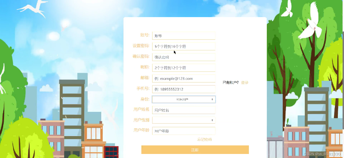 用户登录/注册成功之后可以修改自己的基本信息。修改页面的表单中每一个input的name值都要与实体类中的参数相匹配,在用户点击修改页面的时候,如果改后用户名与数据库里面重复了,页面会提示该用户名已经存在了,否则通过Id来查询用户,并将用户的信息修改为表单提交的数据。