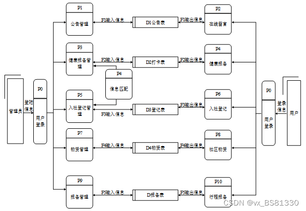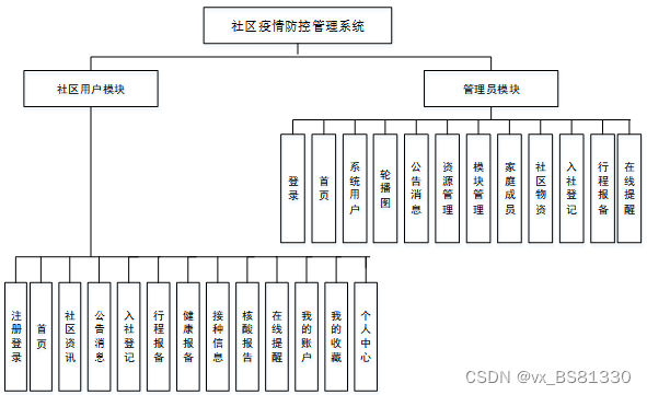 社区疫情防控管理系统总体分为前台用户模块和后台管理员模块。