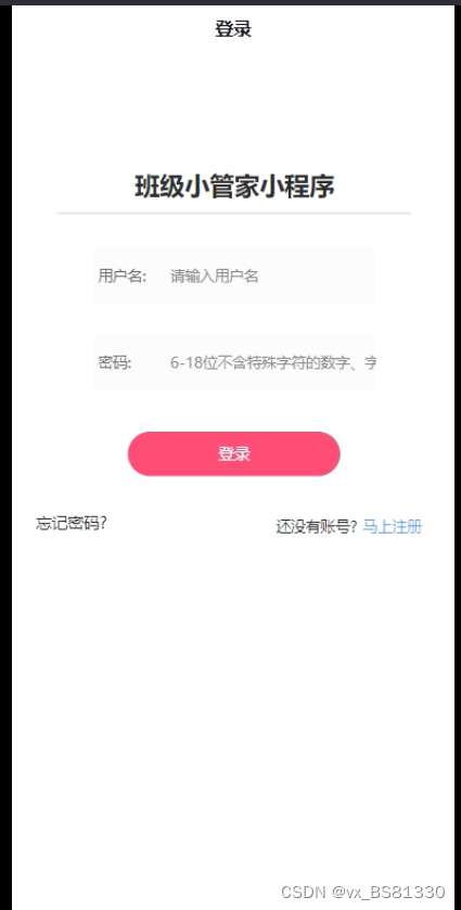 在班级小管家小程序中,用户可以通过输入账号、密码和其他信息来完成登录,如图5-1所示。