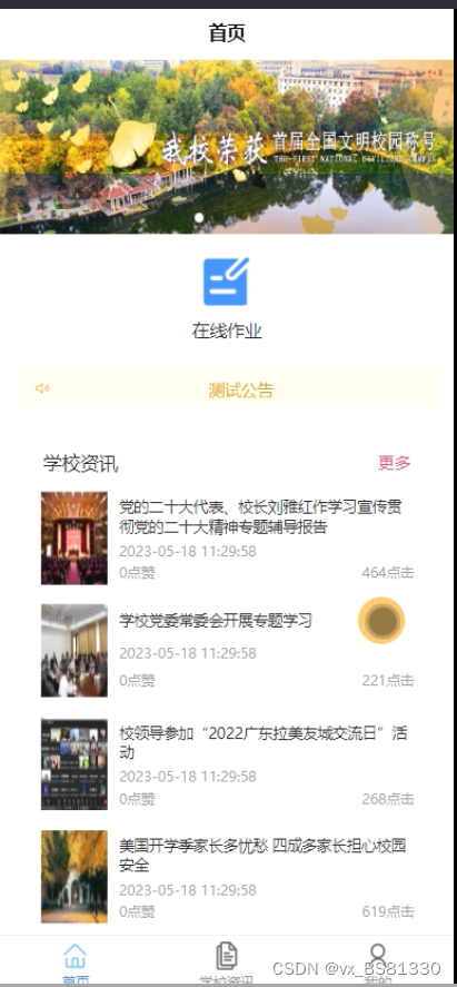 在首页,用户可以轻松访问、查看、操作、收藏、首页、在线作业、学校资讯、我的(学生信息)等多种功能,如图5-3所示,为用户提供了更加便捷的服务。