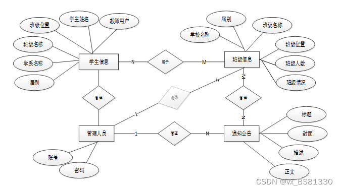 (1) 班级小管家整体E-R图,如图4-3所示: