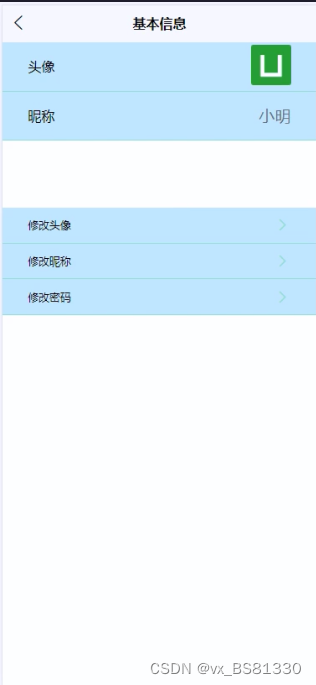 我的,在我的页面可以查看图像、昵称、并可对个人信息进行修改,如图5-5所示。