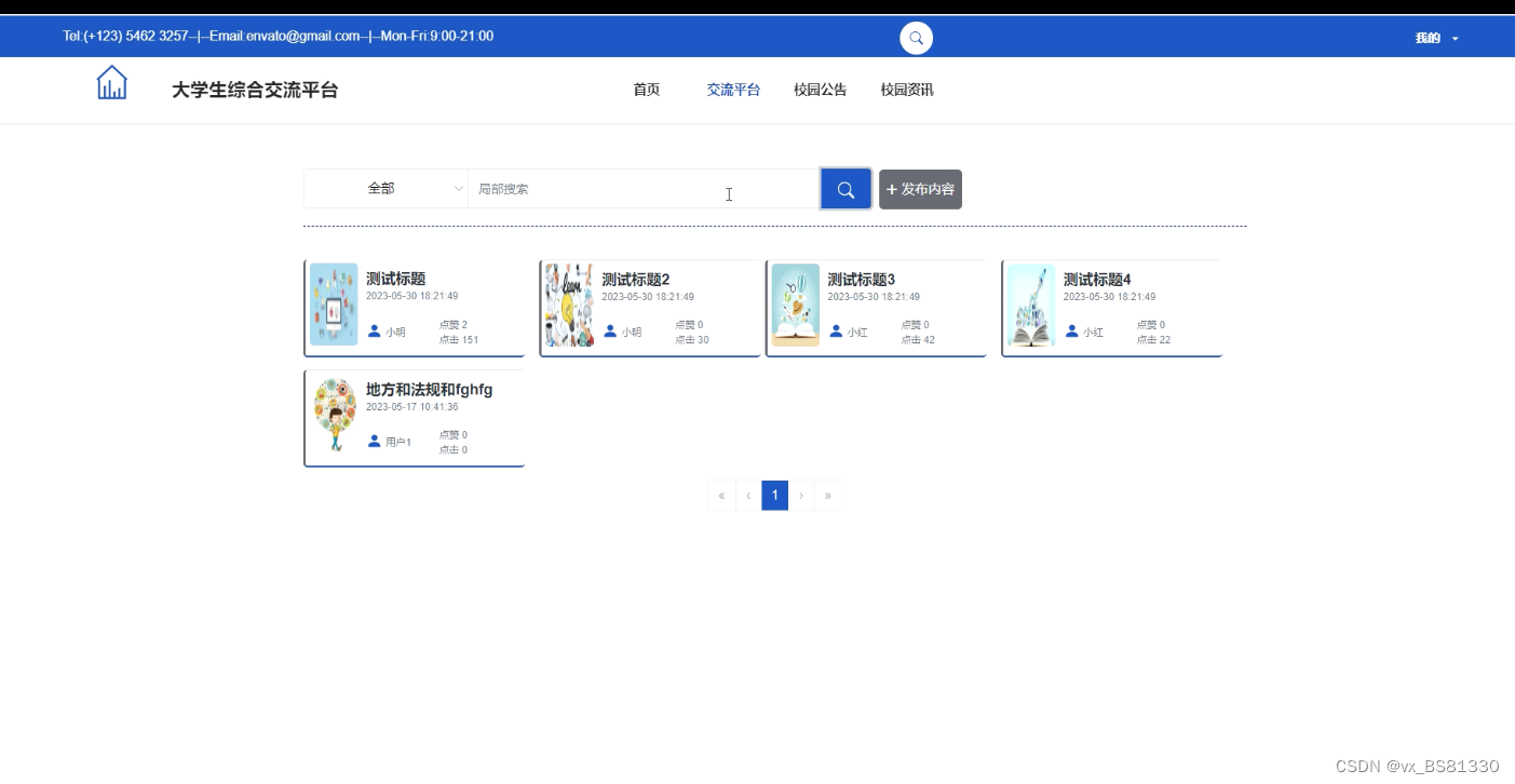 大学生综合交流平台的开发利用现有的成熟技术参考,以源代码为模板,分析功能调整与大学生综合交流平台管理的实际需求相结合,讨论了基于大学生综合交流平台管理的使用。
