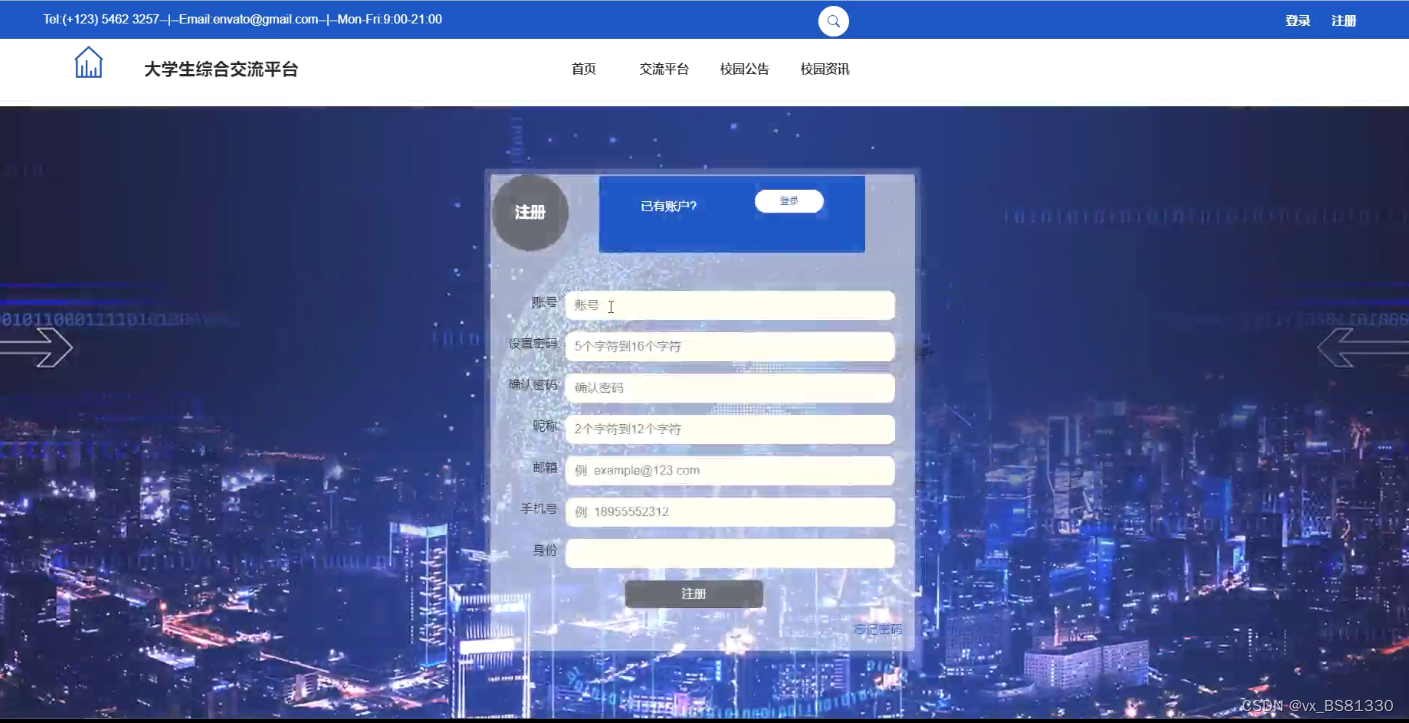 随着社会的发展和科学技术的进步,互联网技术越来越受欢迎。网络传播的生活方式逐渐受到广大人民群众的喜爱。越来越多的互联网爱好者开始在互联网上满足他们的基本需求,同时逐渐进入各个用户的生活起居。互联网具有许多优点,例如便利性,速度,高效率和低成本。因此,类似于大学生综合交流平台,满足用户工作繁忙的需求,不仅是方便用户随时查看信息的途径,而且还能提高管理效率。