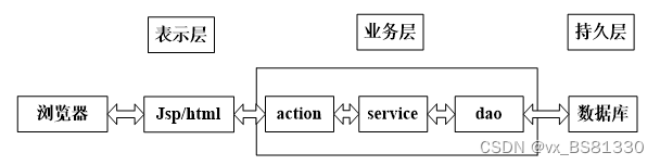 目前B/S体系的系统主要的数据访问方式是:通过浏览器页面用户可以进入系统,系统可以自动对用户向服务器发送的请求进行处理,处理请求是在系统后台中进行的,用户在浏览器页面上进行相应操作,就能够看到服务端传递的处理结果。大学班级管理系统主要分为视图-模型-控制三层架构设计。在视图层中,主要是操作在服务器端向客户端反馈并显示的数据,在模型层中,主要处理相关的业务逻辑、数据整合等,最后的控制层它介于视图和模型之间,主要是调整两层之间的关系,最终落实数据的传递。