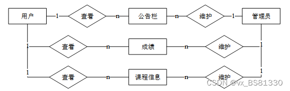对于一个要开发的系统来说,E-R图可以让别人能更快更轻松的了解此系统的事务及它们之间的关系。根据系统分析阶段所得出的结论确定了在大学班级管理系统中存在着多个实体分别是用教师、学生、管理员、课程、成绩等。