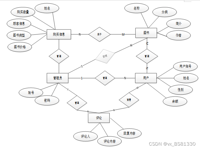 下面是整个网上书店系统中主要的数据库表总E-R实体关系图。
