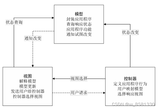 控制层主要负责视图层和模型层之间的数据传输和处理请求操作。当用户通过视图发送数据和请求时,控制层可以接收请求和数据并决定调用哪些模型、通过模型的哪些操作来处理数据和请求,处理完成后,控制层再将数据返回给相应的视图。