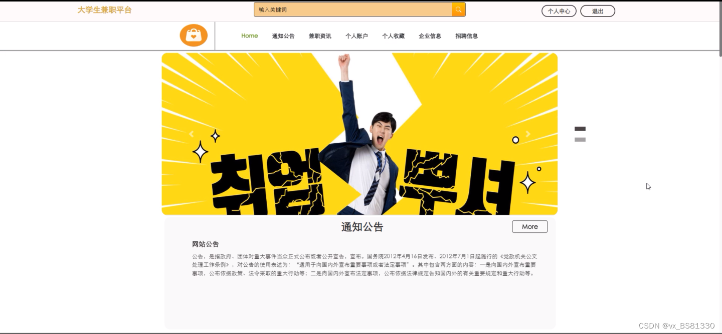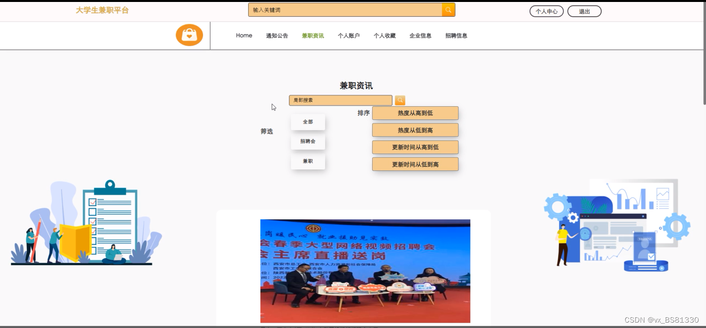 Keywords: part-time platform for college students, Java, SpringBoot, MySQL
