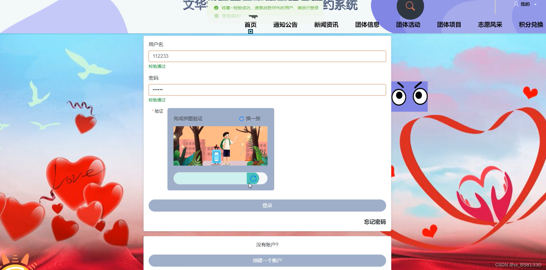 用户登录,在用户登录页面可以填写用户名、密码、拼图验证信息进行登录,如图5-10所示。