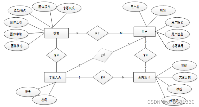 图4-3 文华学院青年志愿者服务预约系统总E-R关系图