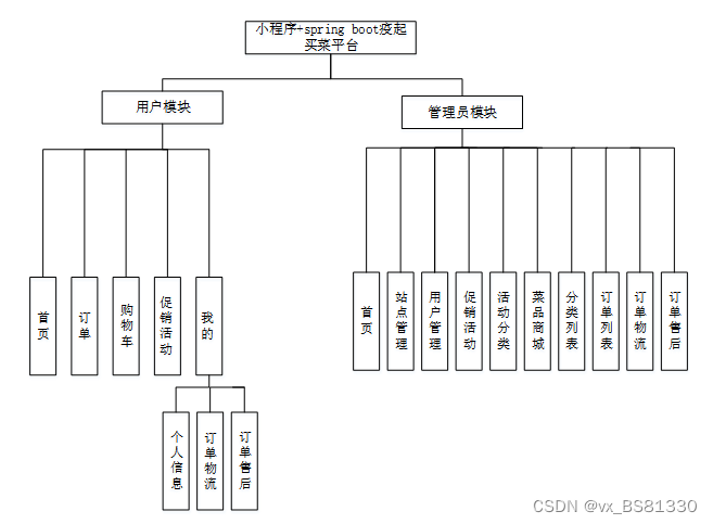 这些功能可以充分满足疫起买菜平台小程序的需求。此系统功能较为全面如下图系统功能结构如图4-5所示。