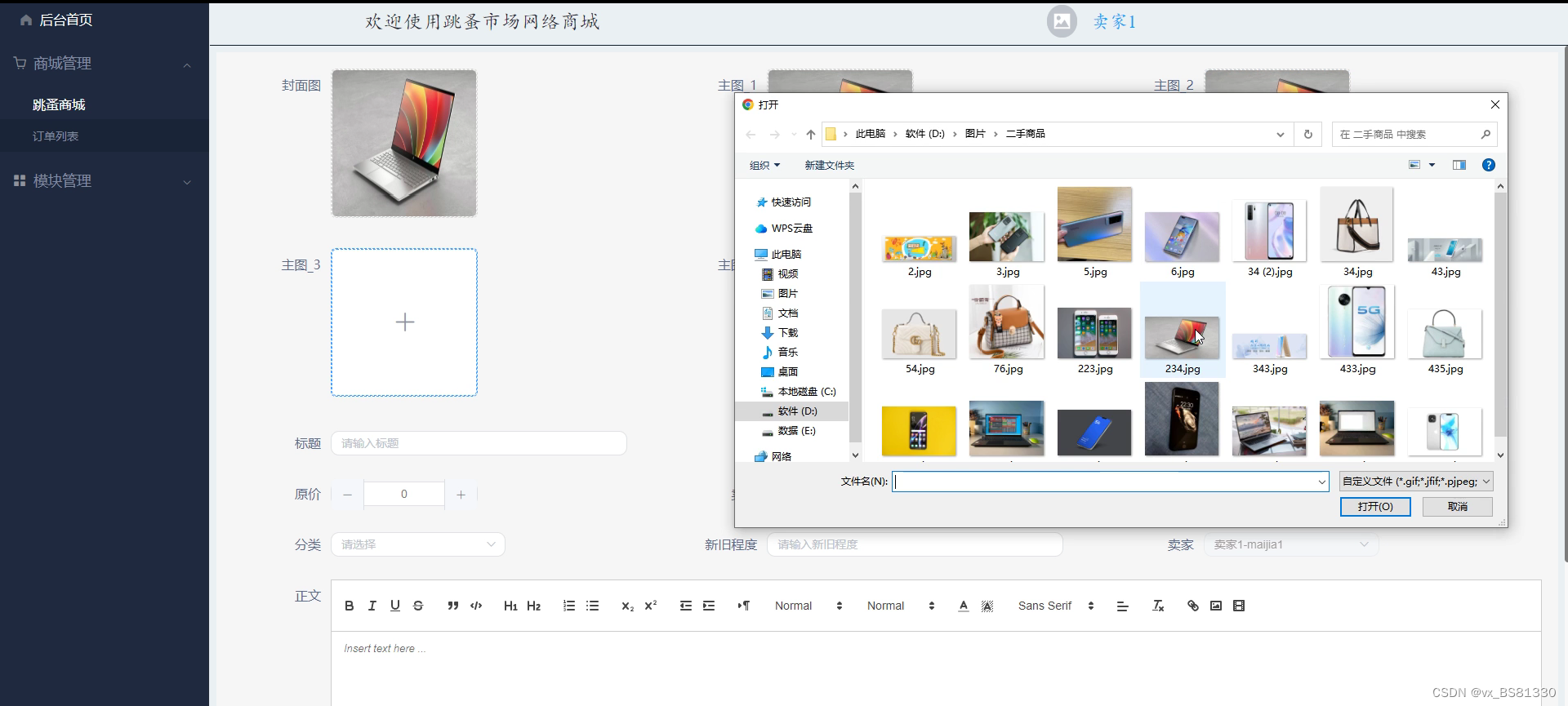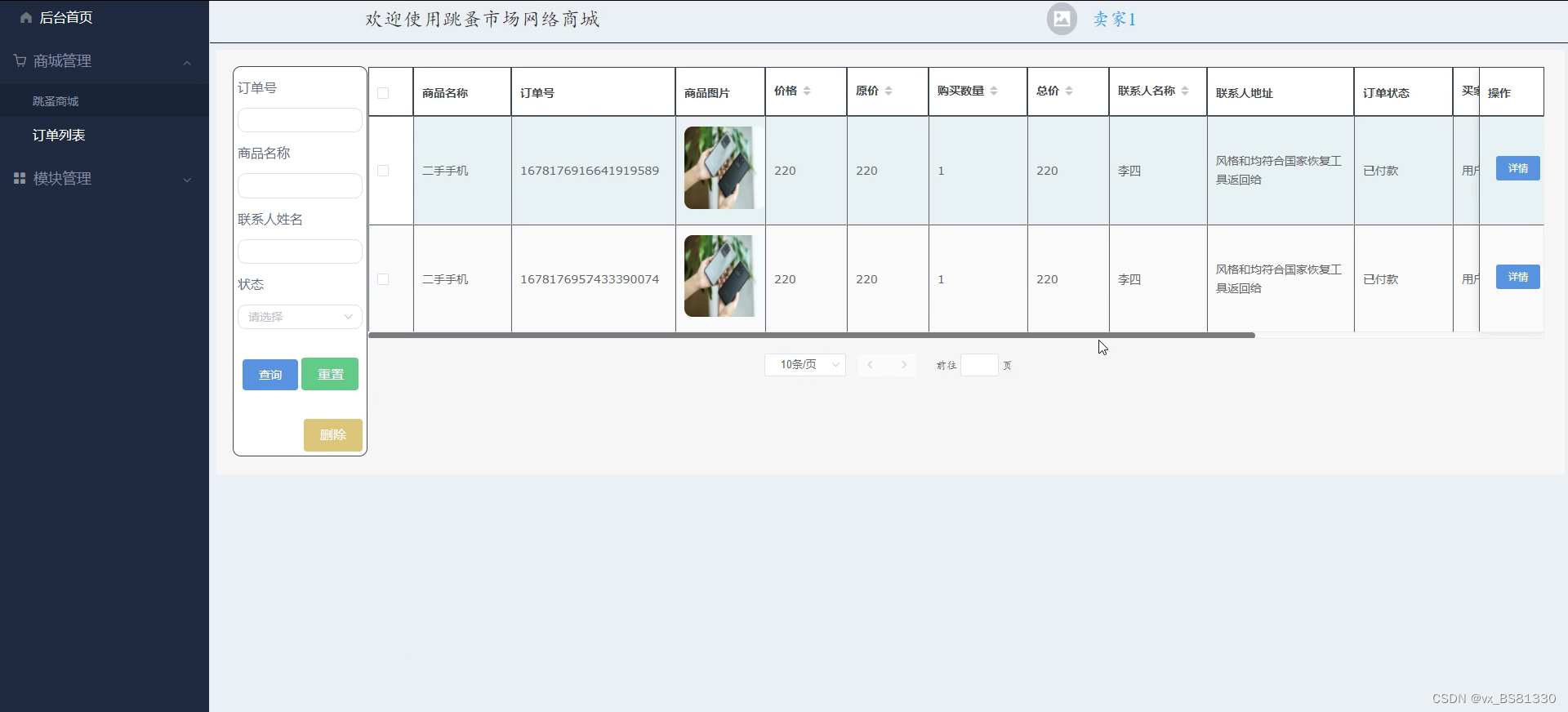 (4)二手商城管理:综合管理所属跳蚤市场网络商城中的所有的商品信息。