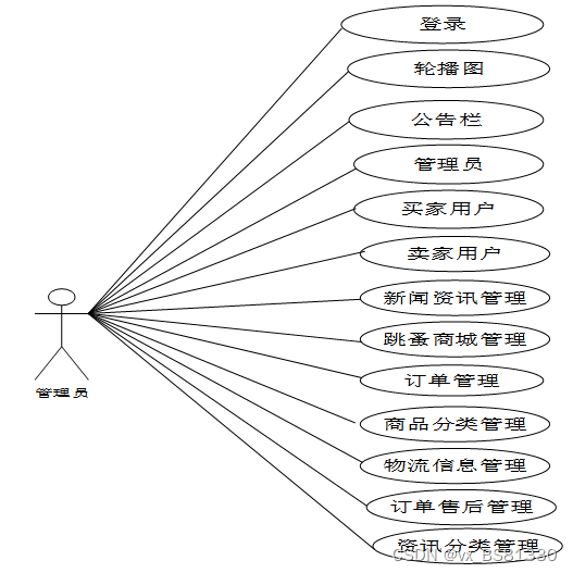 web后台管理上的管理员是维护整个跳蚤市场网络商城中所有数据信息的。管理员角色用例如图2-5所示。