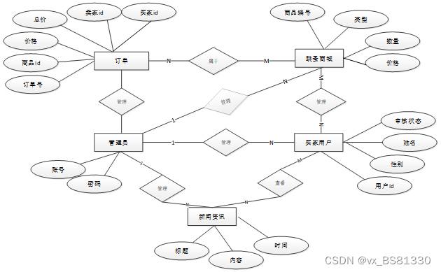 下面是整个跳蚤市场网络商城中主要的数据库表总E-R实体关系图。