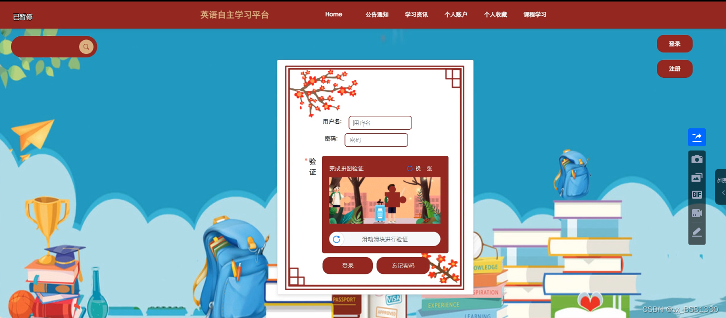 本设计主要实现集人性化、高效率、便捷等优点于一身的英语自主学习平台,实现功能:首页、网站管理(轮播图、公告通知)人员管理(管理员、学生用户、教师用户)内容管理(学习资讯、资讯分类、习题测验)模块管理(课程类型、课程学习)个人管理(个人信息、密码修改)等功能模块。系统通过浏览器与服务器进行通信,实现数据的交互与变更。只需通过一台电脑,动动手指就可以操作系统,实现数据通信管理。整个系统的设计过程都充分考虑了数据的安全、稳定及可靠等问题,而且操作过程简单。本系统通过科学的管理方式、便捷的服务提高了工作效率,减少了数据存储上的错误和遗漏。