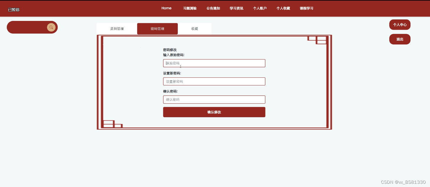 (5)个人中心:当用户点击右上角“个人中心”这个按钮,就会进入到对应的后台进行信息的管理了;