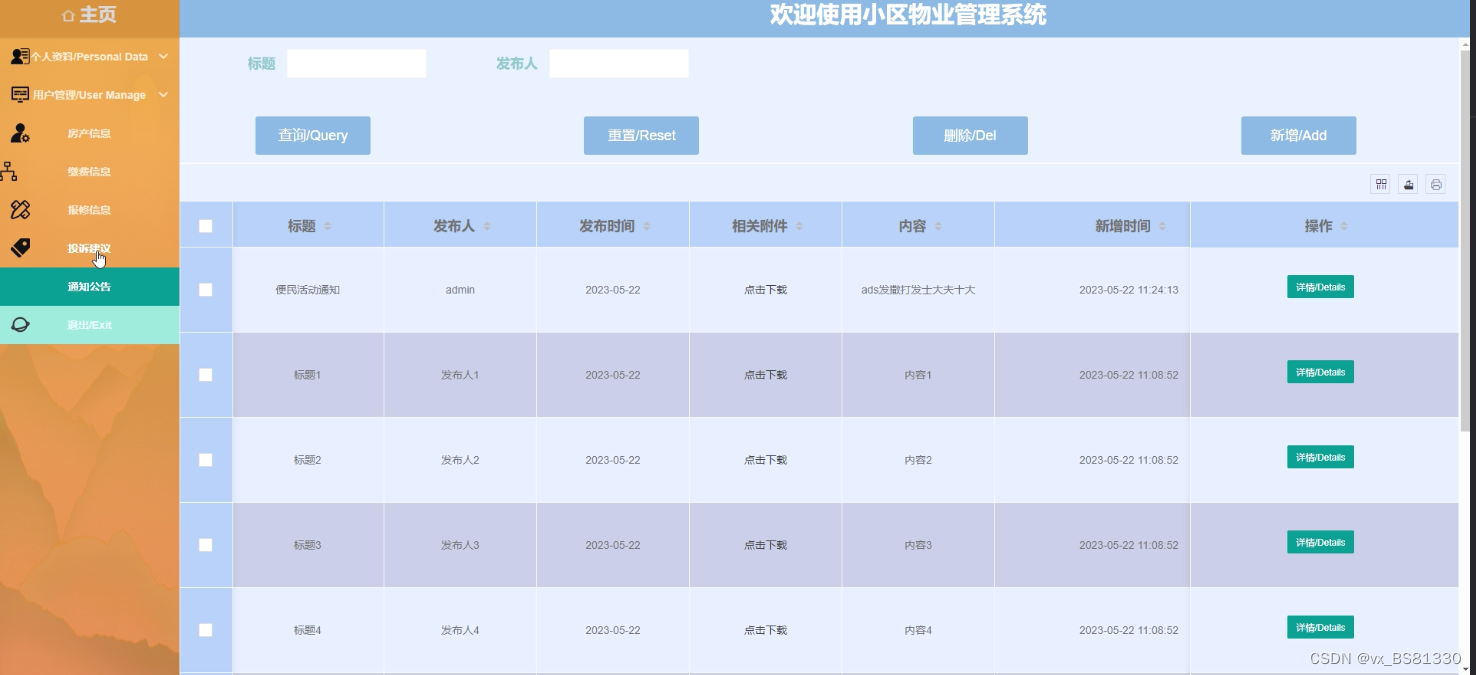 With the increasing maturity of computer science and technology, people have deeply realized the powerful function of computer. Computer has entered all fields of human social development and plays a very important role. The property management of each community is a systematic and complex work, which requires a team to cooperate with each other, division of labor and cooperation. In this field, the traditional manual access or the management of the property with the help of some software often can not track and manage all kinds of property information in real time. Therefore, in order to improve the unified management of the property and enable it to serve the process of software development more comprehensively and effectively, this property management system is developed.