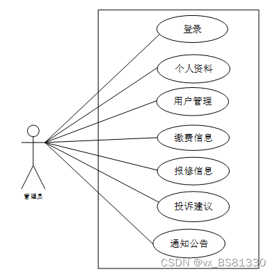 小区物业管理系统中管理员角色用例图如图2.2所示: