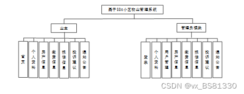 小区物业管理系统的管理员人员包括了管理员以及业主用户两部分,其中管理员拥有最高的权限,可以对用户信息、系统信息以及物业服务信息进行管控。