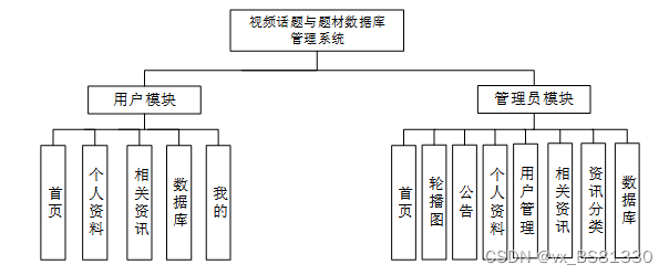 这些功能可以充分满足“视频话题与题材数据库”管理系统的需求。此系统功能较为全面如下图系统功能结构如图4-4所示。