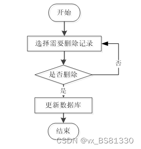 用户选择要删除的信息并单击Delete按钮。系统提示是否删除信息。如果用户想要删除信息,系统将删除信息。系统数据库删除信息。删除信息流程图如图3-5所示。