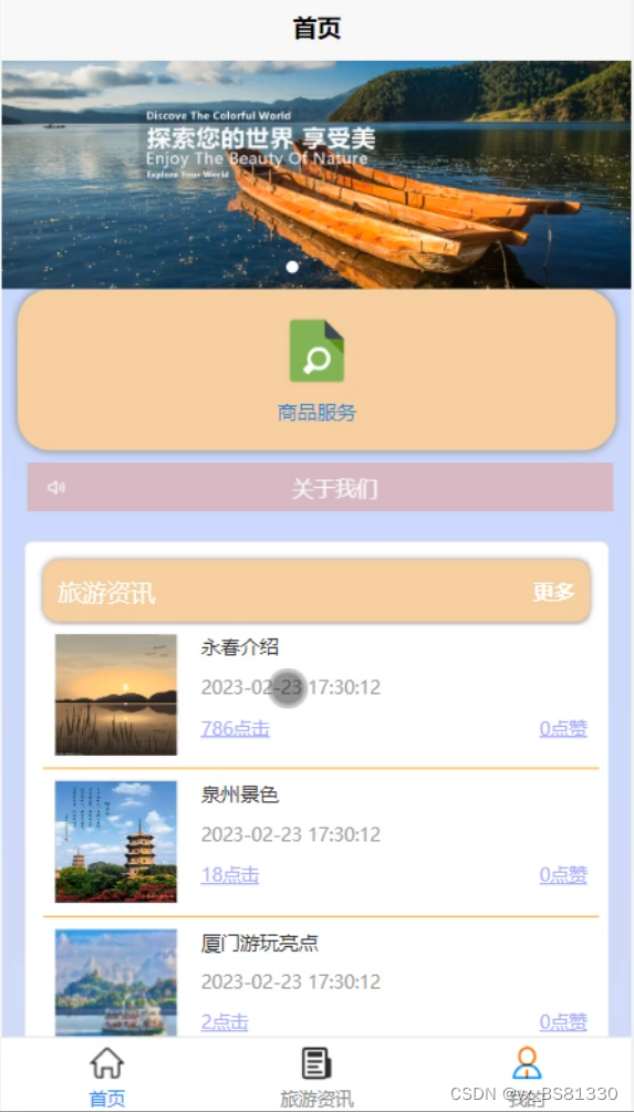Key words: Tourism service system applet; Springboot framework; MySQL database