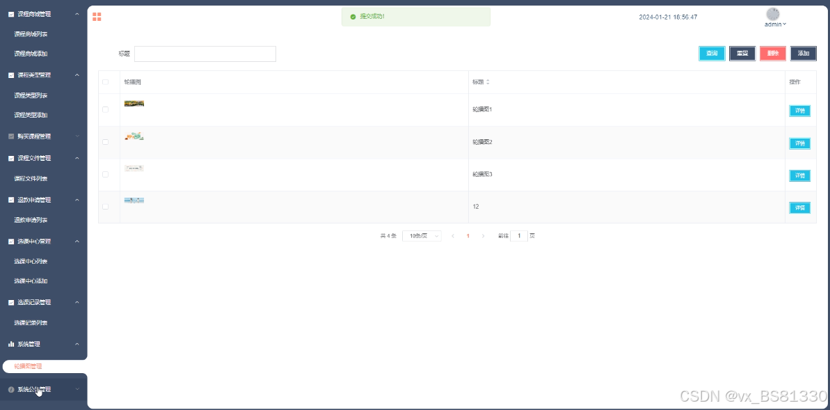 1)学生点击课程商城信息管理就,然后点击添加后并填写信息。