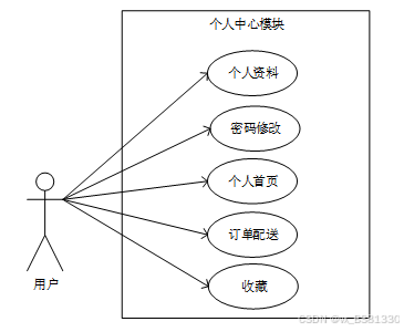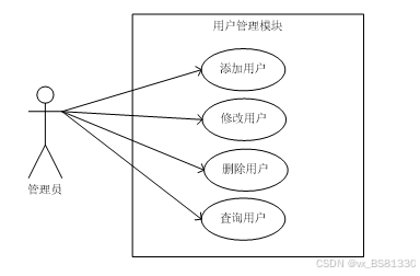 (5)用户管理模块:用户管理是后台管理员独有功能,管理员可以对注册的用户进行修改、删除、查询、也可以添加新的用户。用户管理模块用例如下图2-5所示。