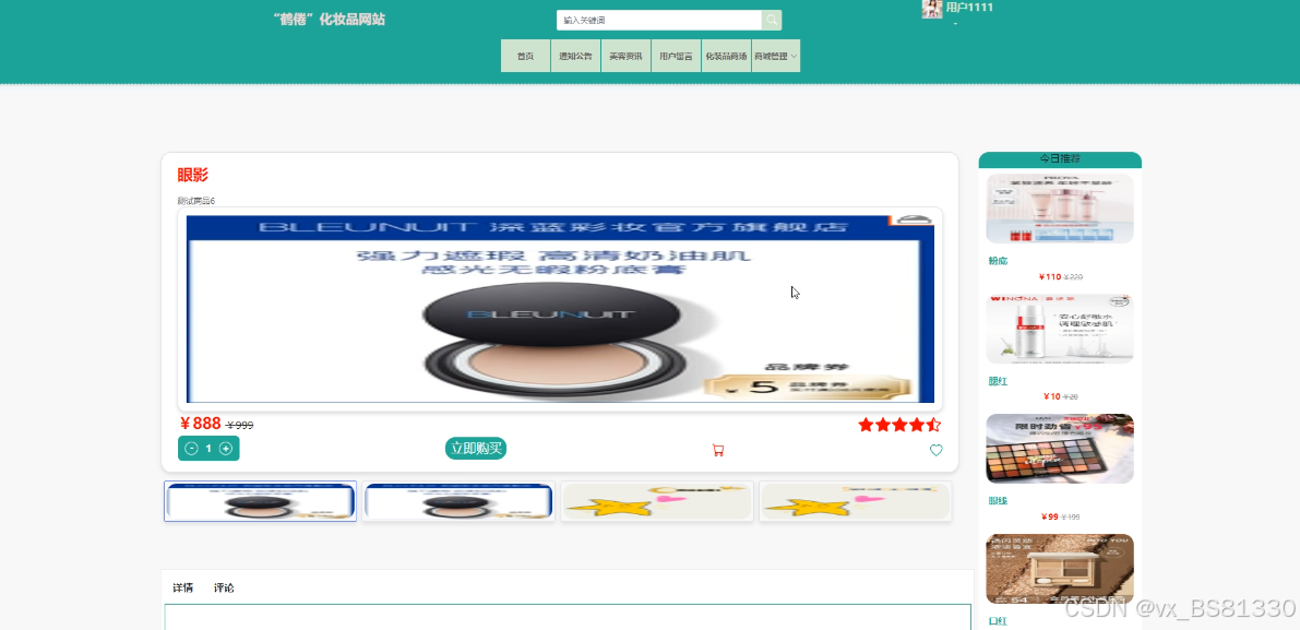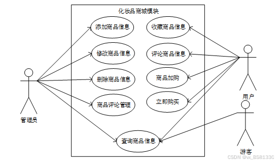 游客只能查看化妆品商城的商品,不能进行任何购买、评论操作,普通用户可以选择自己需要的商品,加入购物车、立即购买、收藏、评论。
