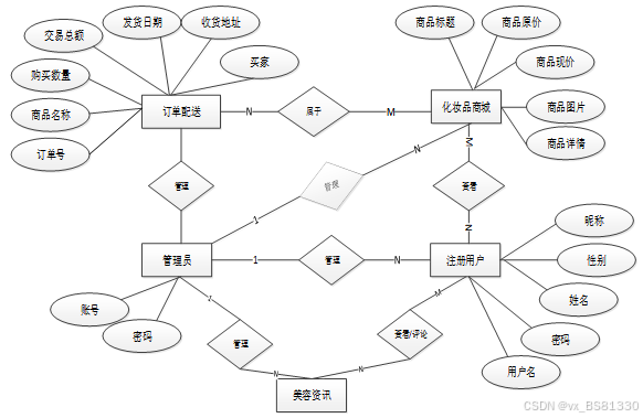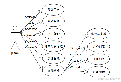 后台管理上的管理员是维护整个“鹤倦”化妆品网站平台中所有数据信息的,管理员角色用例如图2-2所示。
