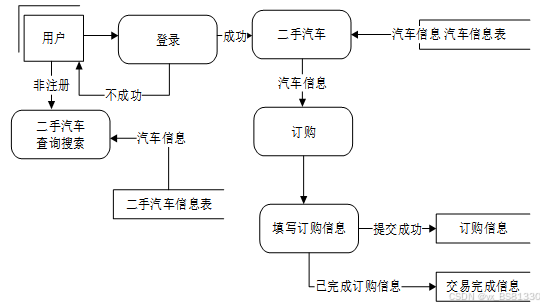 开发二手车之家网站最主要的一个目的就是实现买家用户对二手汽车的订购信息的提交,图2-4就是系统的数据流图。