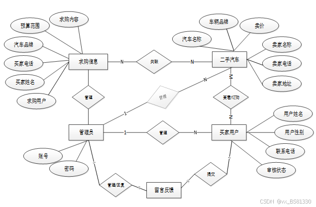 下面是整个二手车之家网站中主要的数据库表总E-R实体关系图。