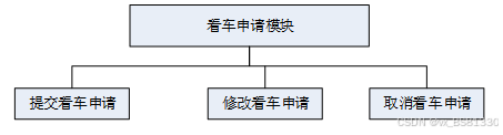 二手车之家网站最主要的一个功能就是二手汽车看车申请,其模块功能结构,具体的结构图如下: