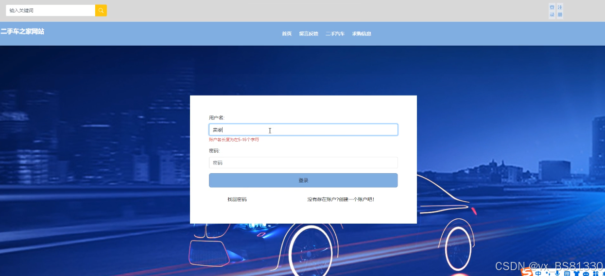 (2)查看二手车之家网站的首页信息:二手车之家网站的首页信息包含了首页、留言反馈、二手汽车、求购信息、我的账户、个人中心等。