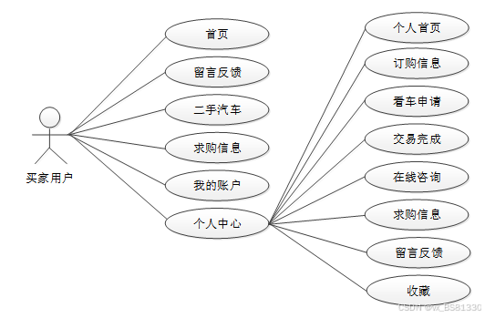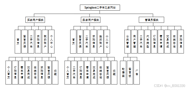 二手车之家网站我划分为了买家用户模块、卖家用户模块和管理员模块这三大部分。