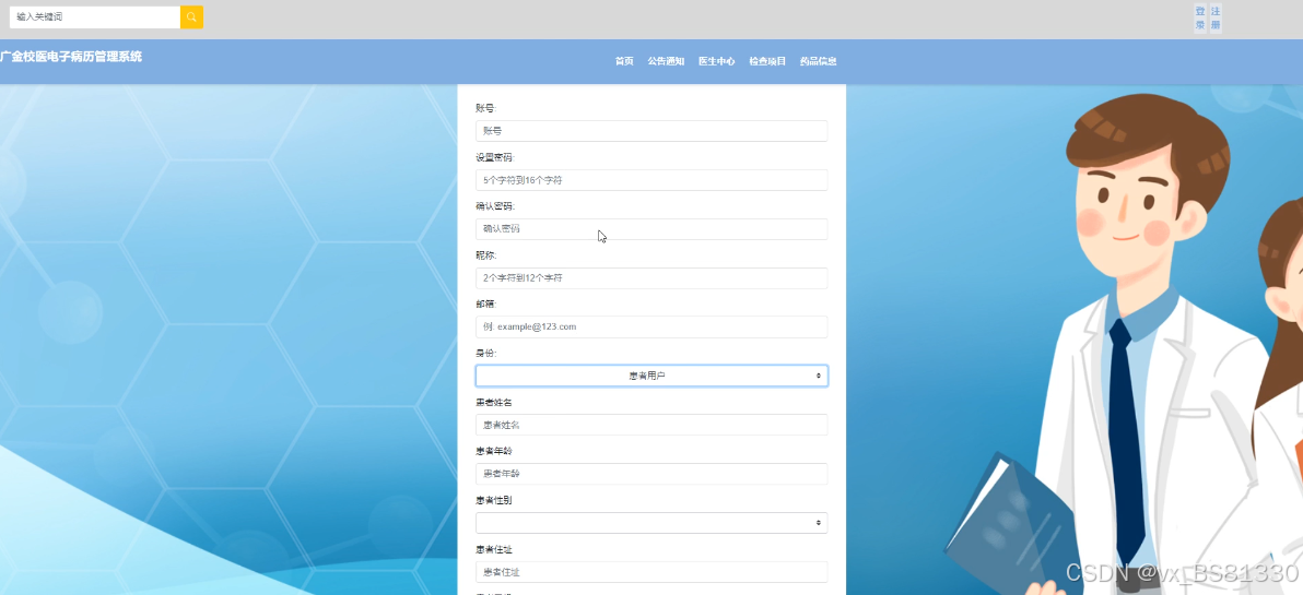 (1)注册登录:医生用户通过前台注册页面进行相关的操作,完成后登录系统前台。