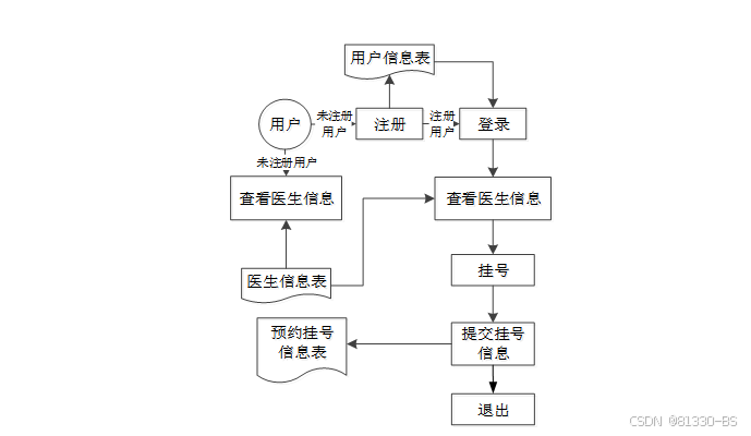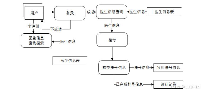 开发乡镇医院管理系统最主要的一个目的就是实现用户对医生信息的挂号,图2-4就是系统的数据流图。