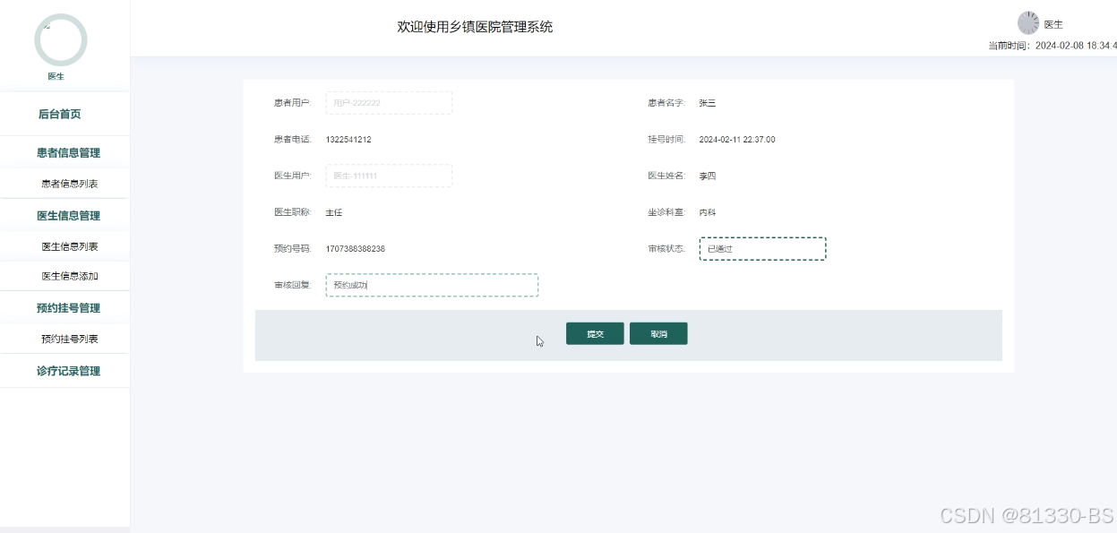 最后通过乡镇医院管理系统,患者可以方便地进行预约挂号挂号、查询病历和用药情况等,避免了传统就医方式中排队等待、重复填写表格等繁琐的流程,提高了患者就医的便利性和满意度。