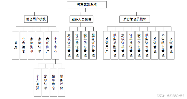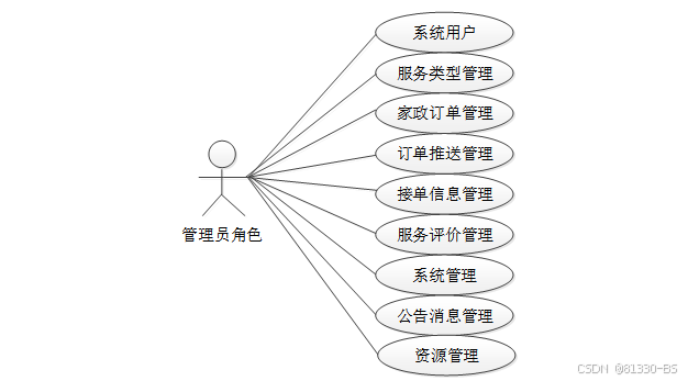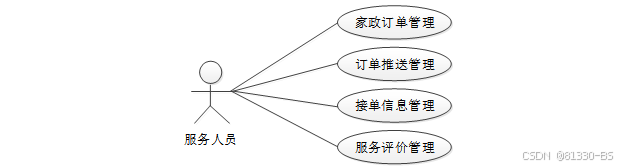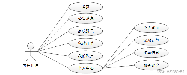 智慧家政系统主要划分为了普通用户、服务人员和管理员这三大角色。具体功能描述如下: