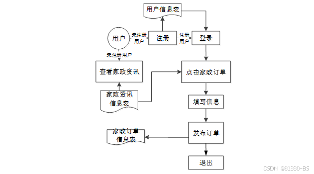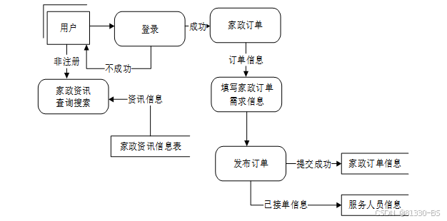 开发智慧家政系统最主要的一个目的就是实现用户对家政订单的发布和家政资讯的浏览,系统的数据流图如下所示。