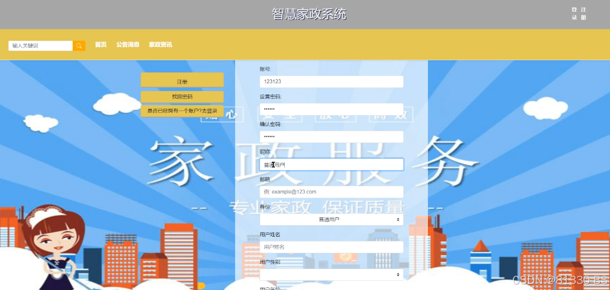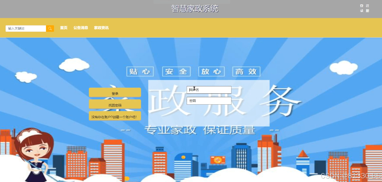 关键词:Java开发语言;智慧家政;SpringBoot框架;MySQL