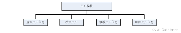 本系统的用户包括后台管理员和前台用户,两个模块的功能基本是相同的,用户比管理员多了一个注册功能,所以以用户模块的结构图为例进行分析,用户模块结构图为例进行分析,如下图: