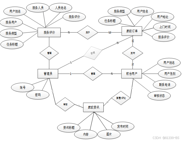 智慧家政系统是一个交流性质的公开平台,用户在平台上提交评论,增加用户之间的互动性。但是同时也为了更好的规范评论的内容,给予管理员删除不合适的评论的功能,所以需要专门设计一个评论管理模块,具体的结构图如下:
