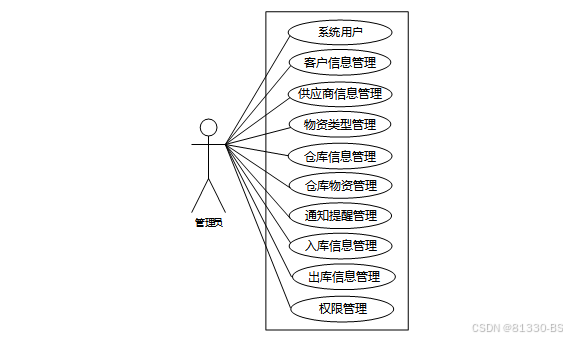 仓储管理系统中管理员角色用例图如图2.2所示: