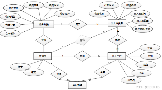 下面是整个仓储管理系统中主要的数据库表以及总E-R实体关系图。